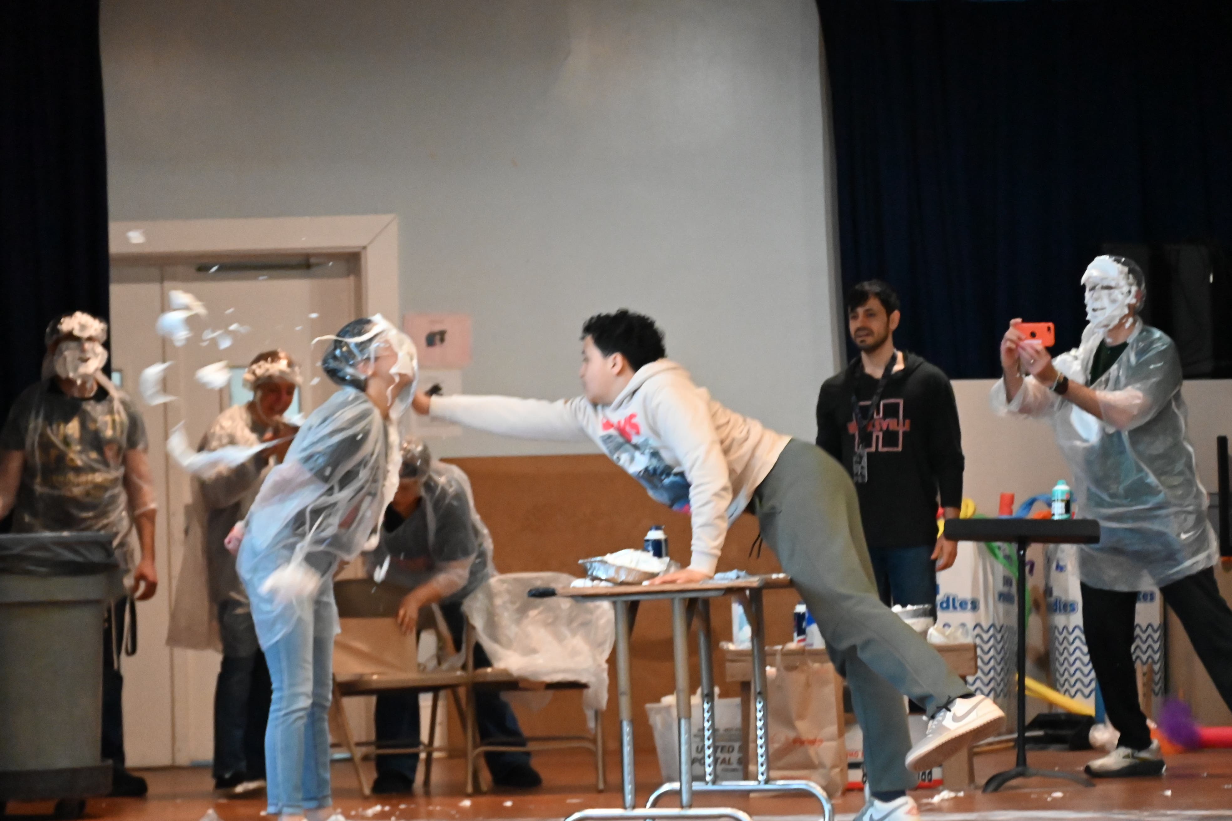 Twenty-five staff members – teachers, assistant principals, and the principal – volunteered to be pied in the face by students.
