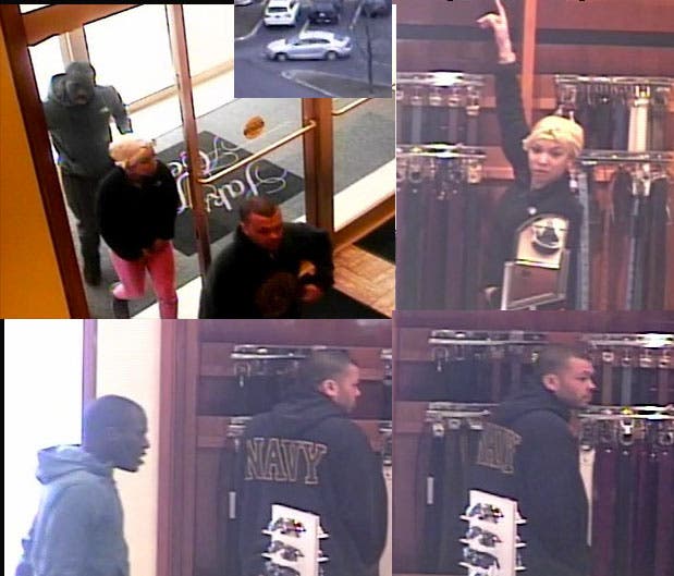 The suspects, who are wanted for grand larceny, left the store in a mid-sized silver four-door vehicle that appeared to be a Volkswagen.