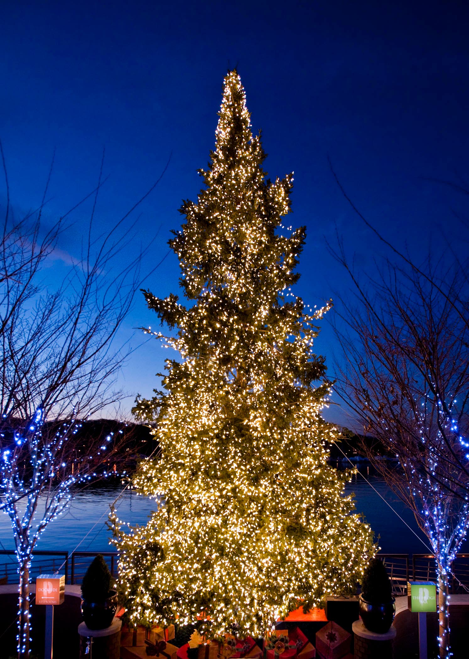 The crowd cheered as the switch was flipped on a beautiful 30-foot balsam fir Christmas tree covered with 25,000 white lights overlooking the Harbor. Santa arrived soon after, to the delight of the younger guests.