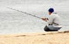 Fishermen were trying their luck at West Neck Beach and a few hardy walkers arrived to stroll the sands before the winds picked up.