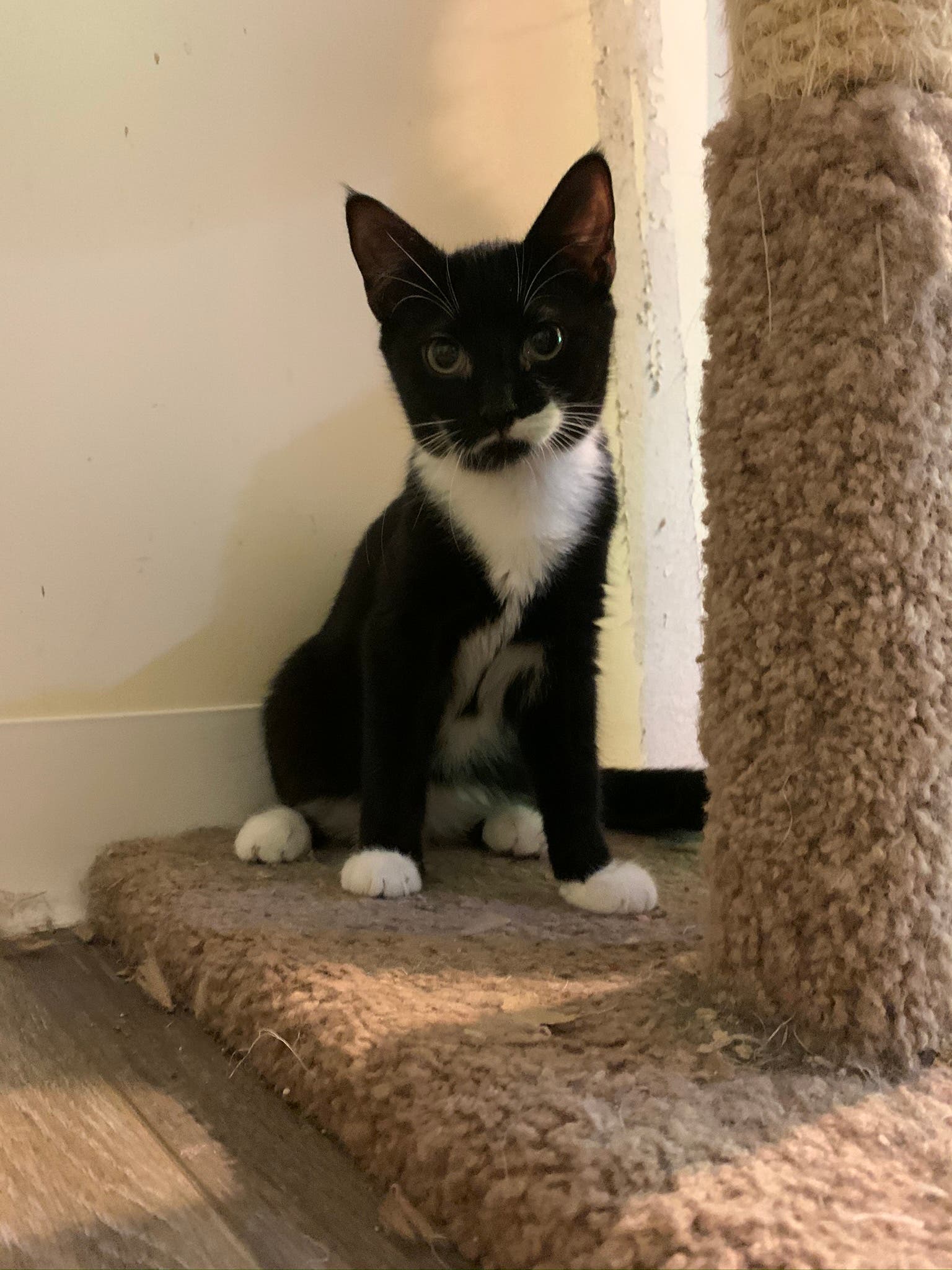 "This teeny tiny girl has a big personality and an even bigger appetite - she loves treats and will follow you anywhere if she believes you’ll give her some," the Huntington-based cat cafe told Patch. "She is very independent and finds joy playing with the many toys we have in our cattery. Buttons can sometimes be wary of new humans, and would do best in a home with someone(s) who will take the time to make her feel safe and loved."