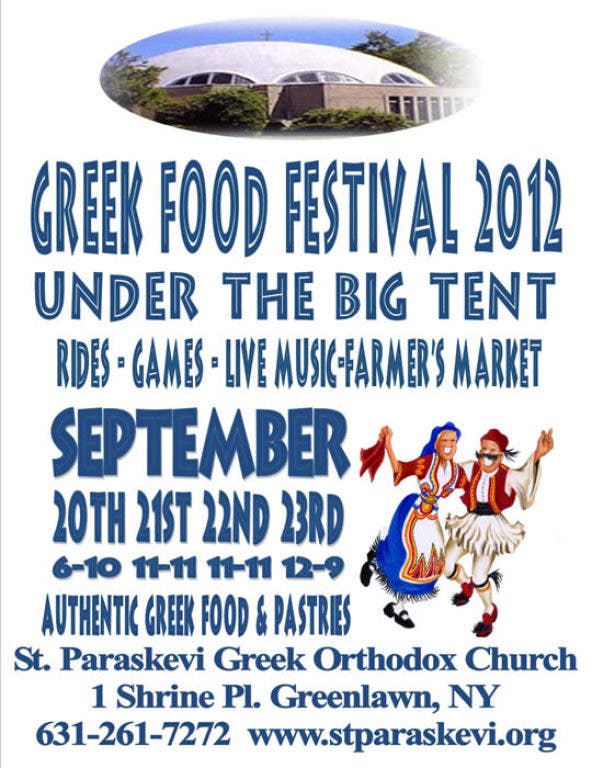 The Church of Saint Paraskevi in Greenlawn invites you to its 2012 Outdoor Greek Food Festival and Grecian Farmers market,