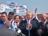 Union members of West Islip School District's custodial staff came rallied in front of West Islip High School Monday to protest "wholesale changes of workers' hours and shifts made by the district without notice."