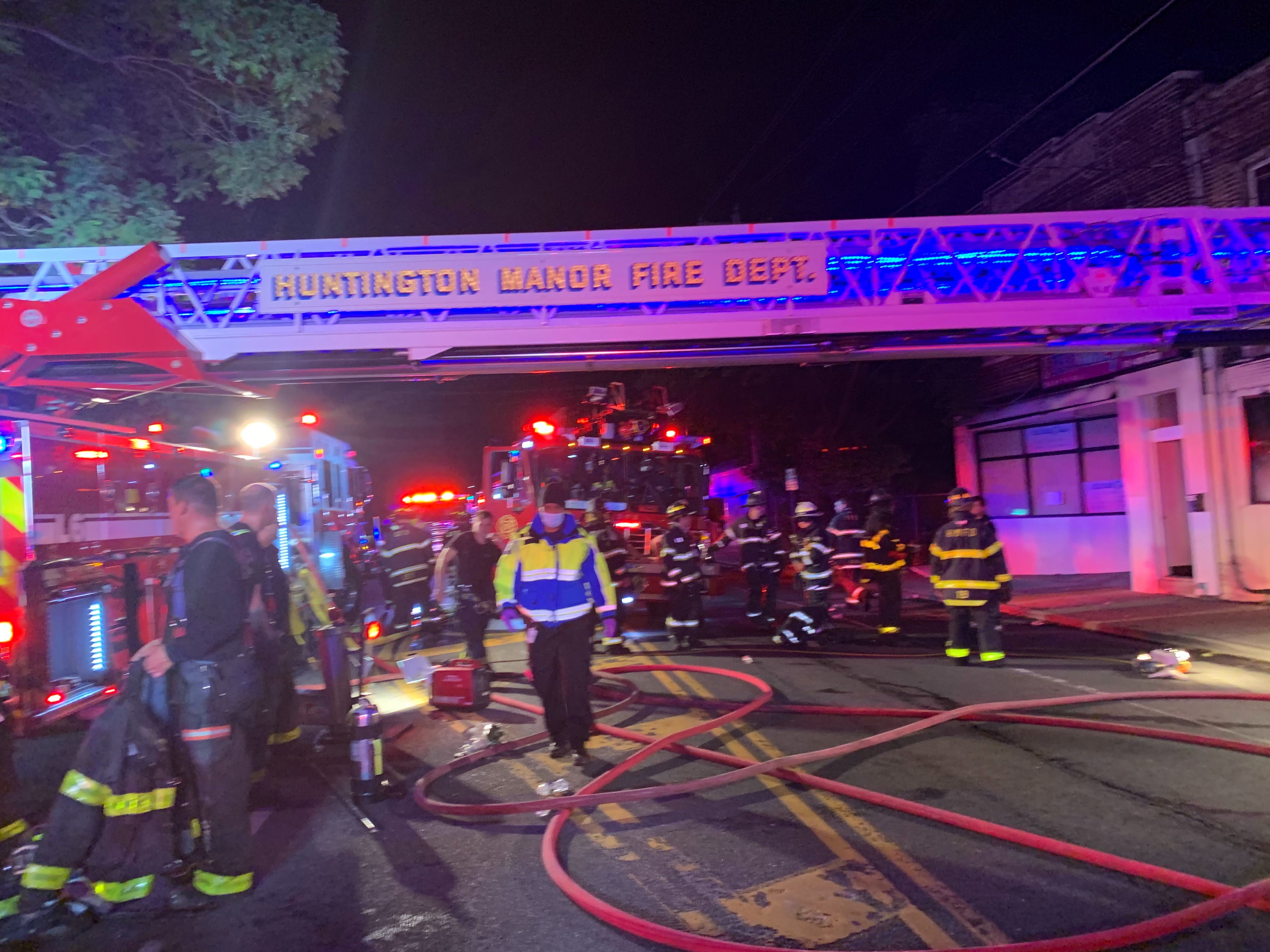 Huntington Manor firefighters battled the blaze with help from units of the Melville, Huntington and Greenlawn fire departments. The fire was brought under control in about 90 minutes. The Huntington Community First Aid Squad provided EMS support, and the Cold Spring Harbor Fire Department handled standby coverage. Units were under the command of Huntington Manor Fire Chief Jon Hoffmann with First Assistant Chief Chuck Brady.