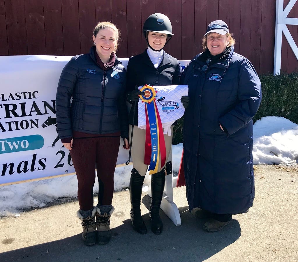 Zone finals were held this year on March 24 and 25 at Kirby Hill Farm in Pawling, NY. Gina Diliberti placed 1st in her class, Junior Varsity Novice Equitation o/f x-rails. The 1st and 2nd place riders are moving on to National Finals. This year Hunt Seat National Finals will be held April 20-22, 2018 at the New York State Fairgrounds in Syracuse, New York.