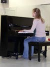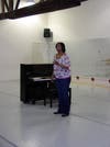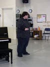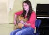 “I’ve been singing for a really long time,” she said after her audition, and has taken guitar lessons and some voice lessons, “but it’s still nerve-racking.” She played “Smile” before judges Andrea Maire, pianist and violist, and talent manger James Washington, strumming her guitar and singing in the audition room, shoeless to protect the dance studio floors, her feet in their striped socks keeping time as she played.
