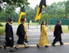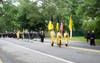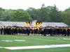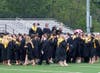 Ceremony begins with a walk along Wolf Hill Road and ends with cap-tossing on the school's football field.