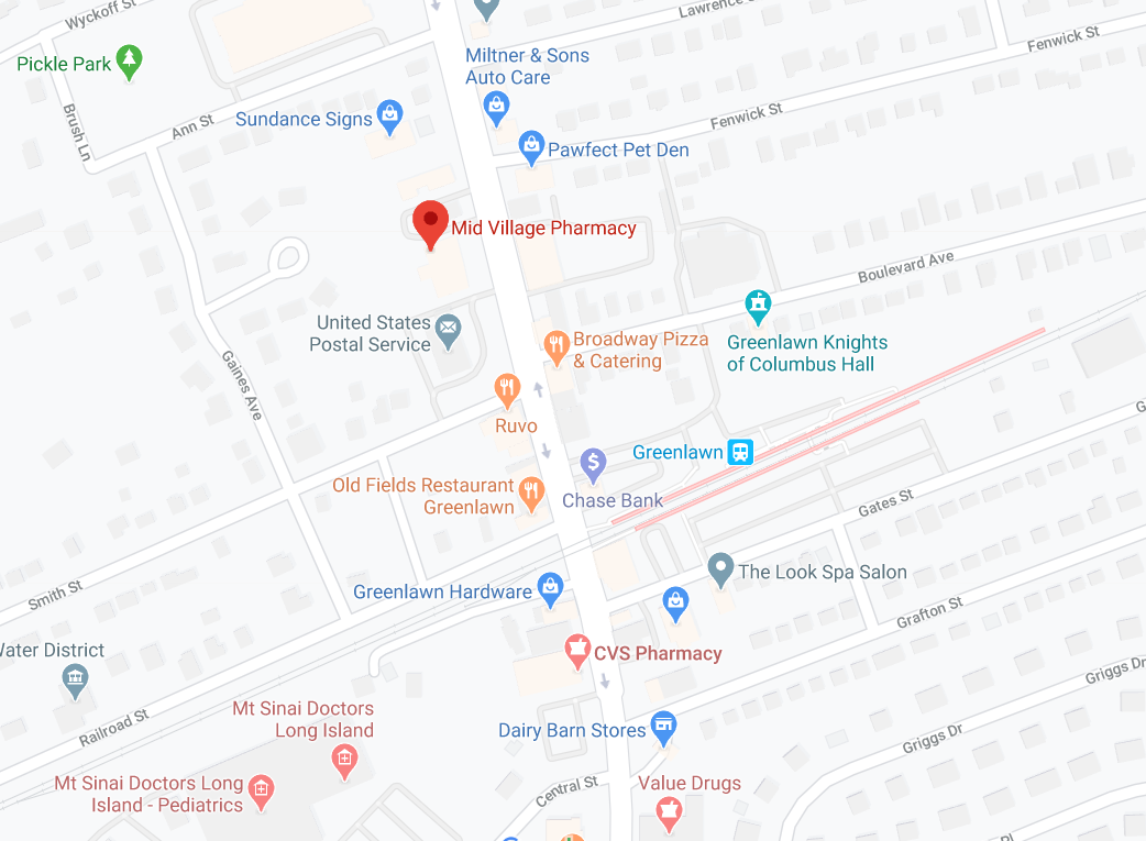 GREENLAWN, NY — Mid Village Pharmacy in Greenlawn will officially be out of business Thursday, a spokesman at the business told Patch. The pharmacy is at 51 Broadway.