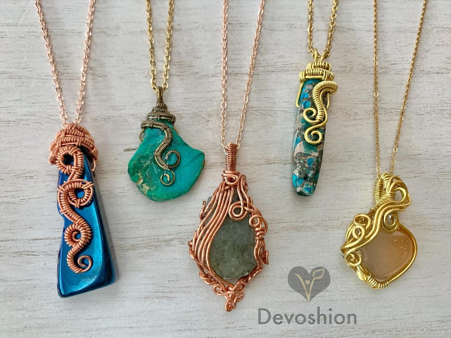 - Jewelry: Wire-wrapped jewelry, silversmith jewelry, crochet jewelry, polymer-clay jewelry, hand-fused dichroic glass jewelry, resin jewelry, beaded jewelry, seashell jewelry, and more.