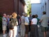 It’s inevitable when large wooden structures were the order of the day, noted , who led a group of about 35 walkers on a three-hour tour with stops for chatting, drinking and snacks at three local pubs.