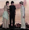Attending the performance was a veteran actress on Broadway, Joan Roberts. Announced before the play began, Roberts was the very first actress to play Laurie in the Oscar Hammerstein II famous play, Oklahoma! She performed the role back in 1943 with famous actors and actresses Celeste Holm, Alfread Drake and Betty Garde. Having had over a decade of experience with Broadway, Roberts was very impressed with the performance by Huntington High School. "I think what they are doing here is excellent, it's just wonderful to see young people that are so talented. I love the singing, it's very subjective and has the classic Hammerstein feel to it."
