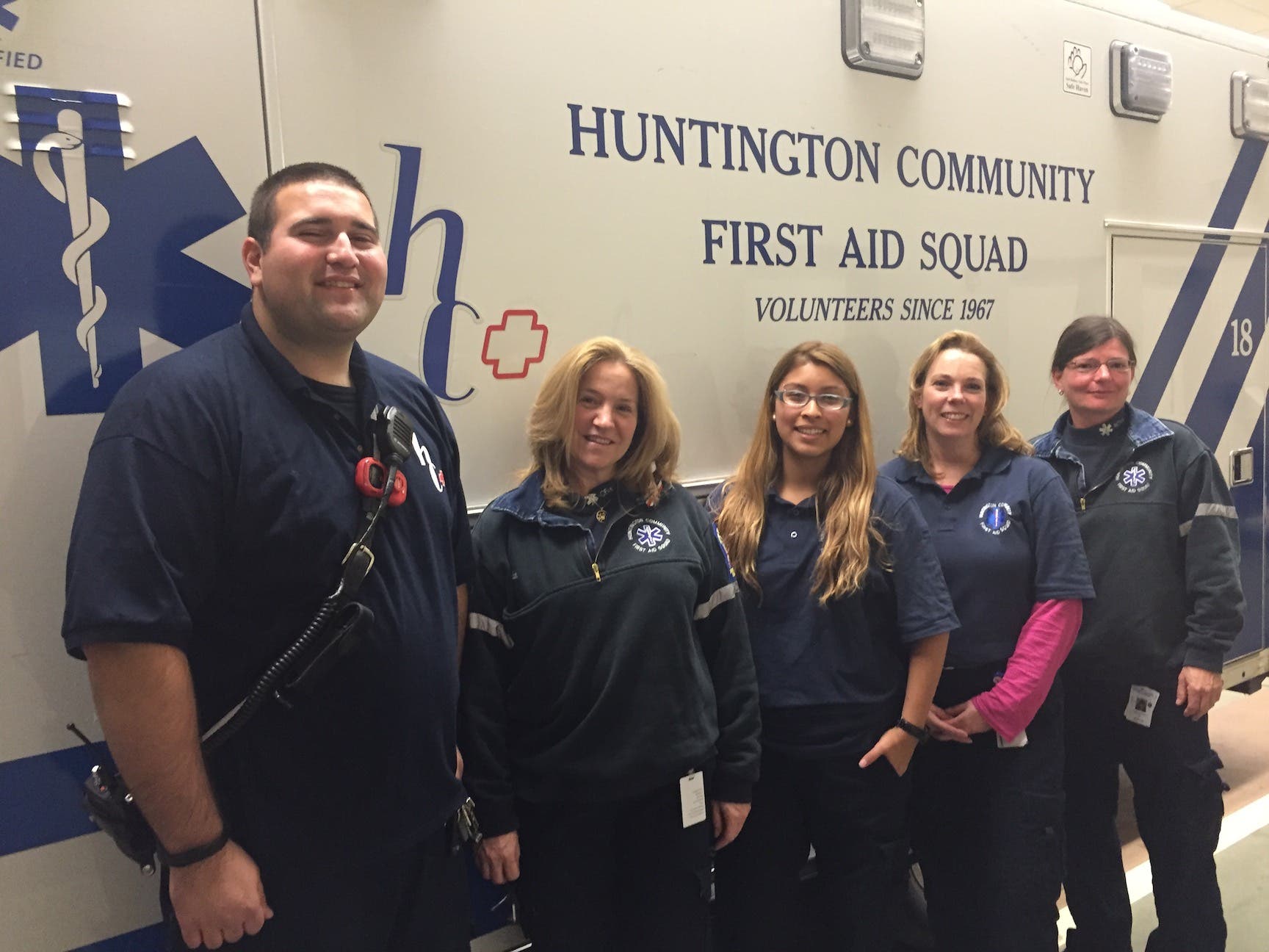 Members of Huntington Community First Aid Squad were able to bring a Huntington Station family’s fifth child into the world when they helped deliver a baby girl in an ambulance last month.
