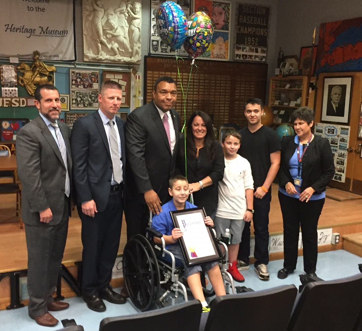 Eli’s family, friends and members of the community gathered at Huntington High School on Wednesday to celebrate Eli and raise awareness for his disease. “Eli’s Law,” was created in honor of this young man’s bravery. The law was sponsored by Suffolk County Legislator William R. Spencer, M.D.