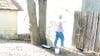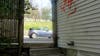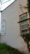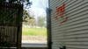 It appears that the rear of the law office is also a frequent target of graffiti. Because the exterior is vinyl, it can't easily be painted over so it must be scrubbed off. Old graffiti is still visible on the north side of the building.