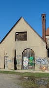 The brick exterior 1905 Trade School building to the east of the arts council owned by the Huntington Historical Society was also tagged recently but with less extensive use of paint or marker than was seen on the other buildings.