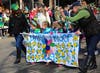 Many marchers and parade-goers, and occasionally their pets, sported a variety of Irish-themed looks, from fake red beards to green eyebrows or mustaches, and green hats and necklaces.
