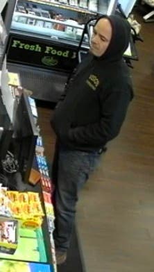 He stole the wallet from the BP gas station located at 1075 Park Ave. around 7:40 p.m. on March 26. He then fled in a 2005 Blue Jeep Liberty with New York license plate HVS 4600. The thief was wearing a black hooded sweatshirt, blue jeans and work boots.