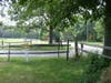 The one-mile Daniel P. Davison Trail is a gentle walk with some slight hills that winds through the forest and along the open fields, bringing hikers to a stretch that runs along a split-rail fence that borders Lawrence Hill Road.