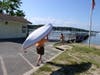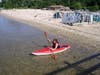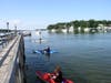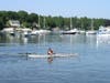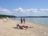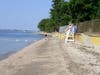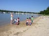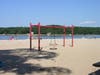 Gold Star Battalion Beach on West Shore Road is adjacent to the Coindre Hall boathouse and overlooks the harbor. It has a large building with restrooms and a first aid station and break room for the lifeguards. Several picnic tables sit on its wide deck, and ramps lead from it to the sandy beach. There’s also a playground area with a bit of shade. The town also offers kayak lessons here.