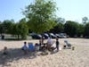 At Fleet’s Cove Beach, there’s a playground area that gets some afternoon shade, a tire swing and regular swing sets. Beach goers also often can watch members of the Sagamore Rowing Association or the Long Island Rowing Club practice beyond the roped-off swim area.