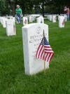 The thousands of white headstones commemorate fallen soldiers, with the honorably discharged veterans’ name on the front and the spouse or dependent child’s name listed on the back of the headstone.