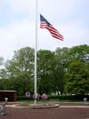 In addition to memorials, the island contains the cemetery’s large flag, which flys at half mast most days since there are burials each weekday. Cemetery visitors are welcome Monday through Friday from 8 a.m. to 4:30 p.m. The cemetery is closed on federal holidays except Memorial Day and Veterans Day.