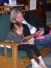 Five-year-old Billy Alexander headed for the dinosaur books and demanded side effects from dad Bill as they leafed through the book. They sat on one sofa across from mom Meghan and little sister Mackenzie, 3, who was intent on the story she was hearing. “We love it here,” said Meghan Alexander.