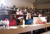 The movie crew was at Stimson Middle School to film a town hall scene on Sunday.