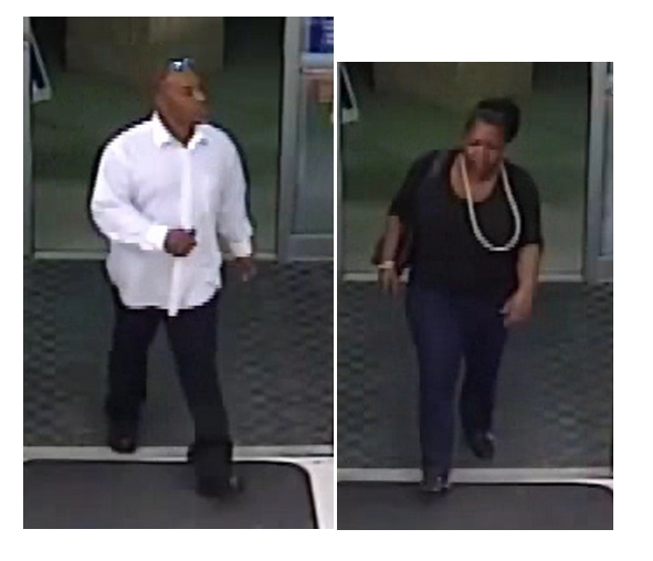 The man is described as black, in his mid to late 40s, approximately 5-foot-10 and 230 pounds. He was wearing dark-colored pants and a white long-sleeve collared shirt. He fled the store on foot and was last seen on Cedar Road. The woman is described as black, in her mid to late 40s, approximately 5-foot-9, 250 pounds and with black hair. She was wearing a black top with blue jeans.