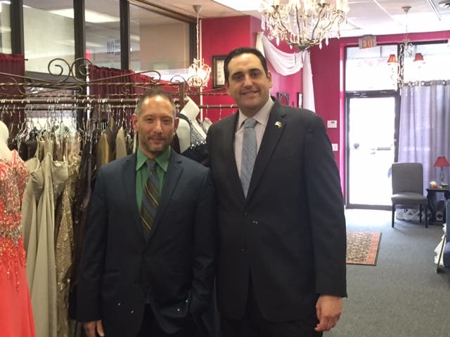Photo: (l-r) Charles M. Prokop Jr., owner of Princess Bridals of Huntington Village and Assemblyman Chad Lupinacci.