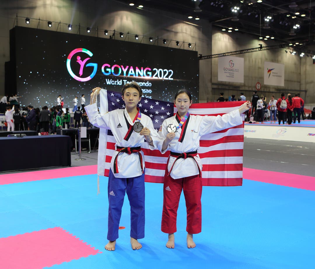 Preston Park, representing Team USA, won a silver medal in the cadet pair division of the 2022 World Taekwondo Poomsae Championships.