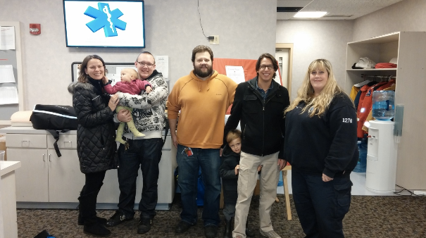 Family visits with Huntington Community First Aid Squad EMTs, who delivered Baby Kaitlynn in 2013.