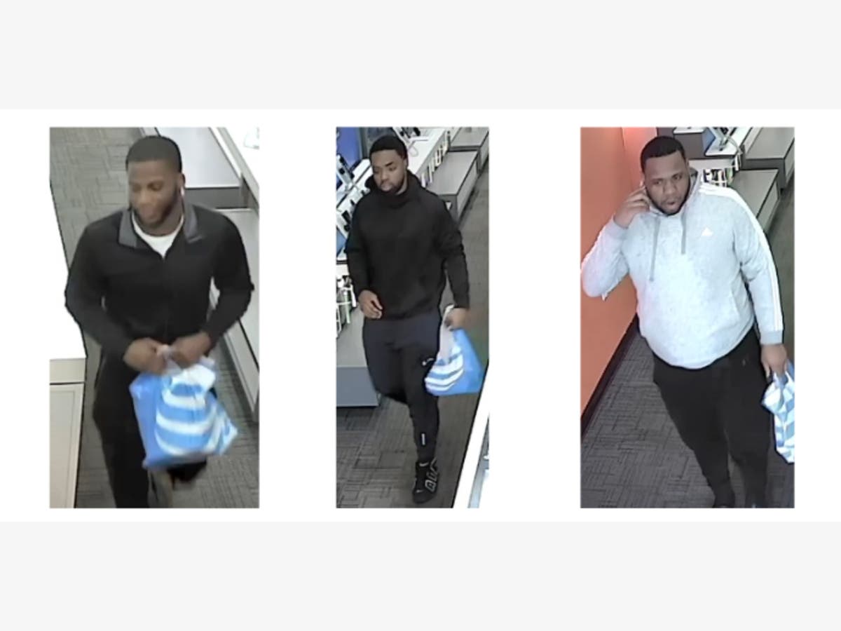 The three men are wanted for opening fraudulent accounts and receiving $15K worth of phones on credit, which was never paid, police say.