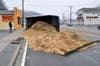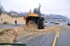 A late-model sedan was making a left turn from Engelke Avenue when it collided with the truck, which was eastbound on Jericho Turnpike. Contents of the truck spilled onto Jericho and traffic backed up in both directions.