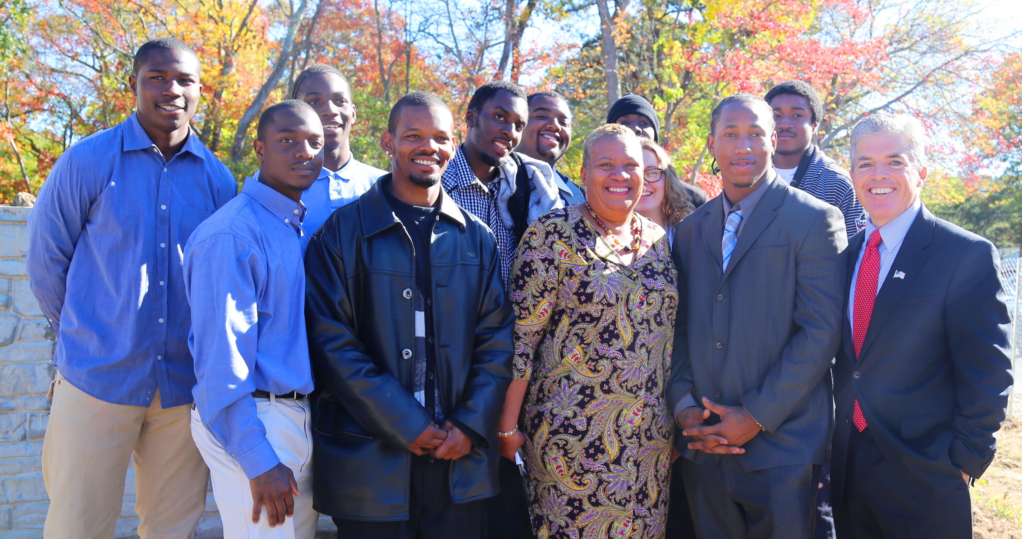 Members of Youthbuild are shown here with Councilwoman Tracey Edwards and Suffolk County Executive Steve Bellone.