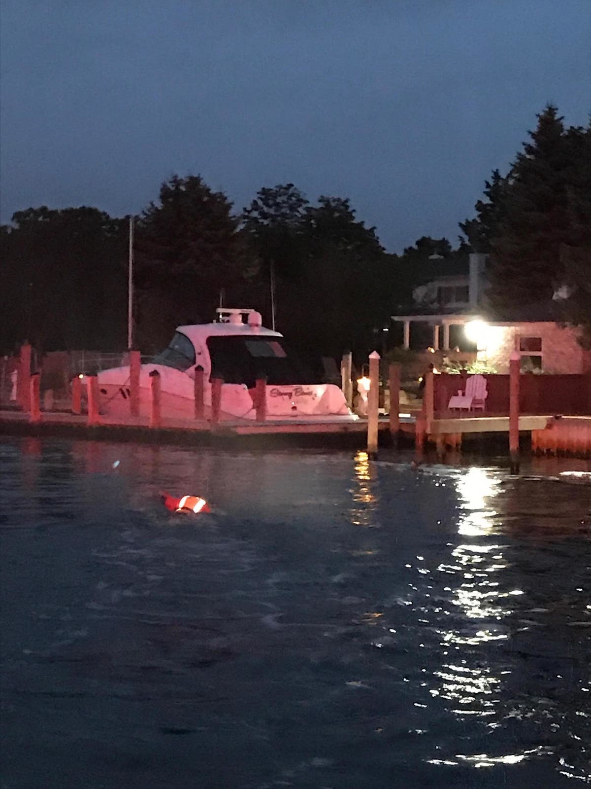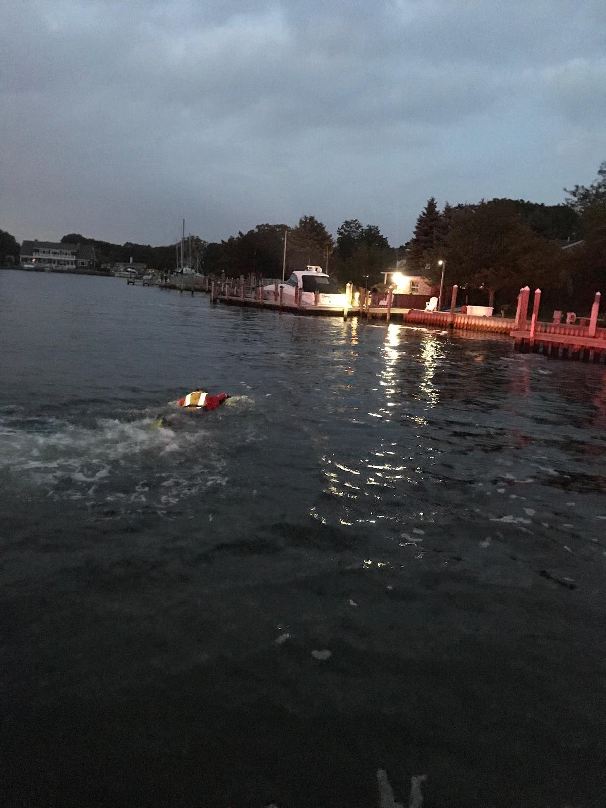 The two then were able to make their way back to the bulkhead where Islip crews assisted the two out of the water.