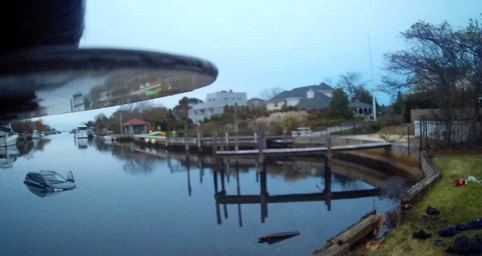 According to the Islip Fire Department, the car was partially submerged 60 feet out into the water.