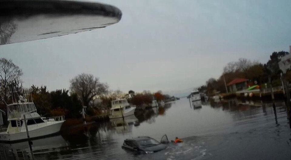 An Islip Town park ranger had arrived prior and entered the water to help the driver out of the car.