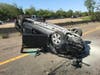 Crews found the one car overturned onto its roof with the driver out of the vehicle.