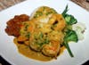 Appetizers: Tempting starters include Berkshire baby back ribs, served with the house barbecue sauce and homemade slaw ($9), plump seared sea scallops paired with truffled aioli and baby greens ($11), and Prince Edward Island mussels, steamed in a sweet Thai curry broth ($8).