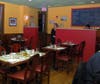 Decor: The restaurant’s bright door, and the velvet curtain that guests pass through upon entering, set the stage for the fact that red will play a commanding role in the décor. Red makes its statement as an accent color, emboldening a bookcase, the serving station and even the frame circling the blackboard announcing the specials. Italian pottery and copper pots adorn golden walls, with dark wood wainscoting adding warmth. Candlelit dining makes for intimacy. The minimalist yet sophisticated interior is reminiscent of a trendy Manhattan eatery.
