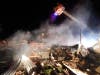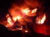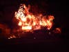 One person suffered critical burns; a firefighter suffered minor injuries.