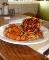 Sides: As if all of this sandwich goodness wasn't enough, the dish comes with your choice of either french fries, sweet potato tots, tobacco onion rings, potato salad, coleslaw or a fruit cup. Who are we kidding with the fruit cup. I chose to have my dish piled high with sweet potato tots.