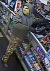 The man was wearing a full, tan-colored facemask, camouflage pants, a dark-colored jacket with a hood and black gloves. He fled the scene in a tan Pontiac Aztek westbound on Express Drive North, police said.