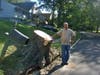 A large tree came down outside the Melanson's Ravenwood home yesterday but within an hour, a dozen neighborhood men showed up to help clear his yard. Shortly after town of Smithtown employee Bob Clark and his men arrived and cleared the entire tree away – a giant stump and an uprooted curb remain.
