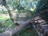 Her neighbor’s tree came crashing down onto her screened-in back porch and took power lines with it. It happened at 9:30 a.m. on Sunday and she has not heard back from LIPA as of yet.