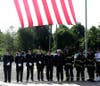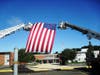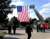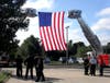 The children quietly processed out of the auditorium and out of the building led by administrators and the B.O.E. They walked past the sea of flags at the entrance of their school as they looked up at an enormous American flag suspended between two fire trucks. The flag, provided by Steve Butler was flown at Ground Zero.