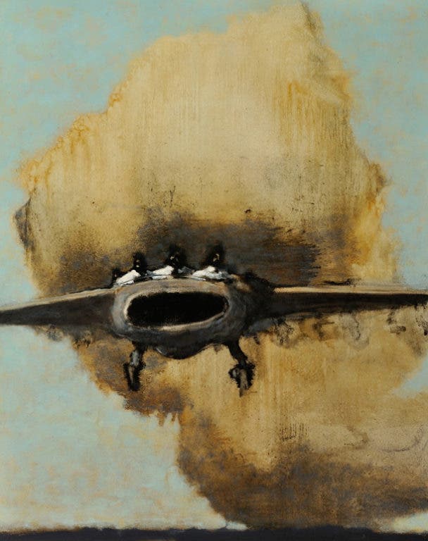 “In Konigsberg’s work, the viewer becomes cognizant of a duality between the lush painterly surface and the mysterious narrative of the composition. His surfaces are modulated between open, scumbled brushwork and bottomless, velvety blacks. The paintings are visually rewarding and viscerally pleasurable. The drama of the subject matter, whether it is nature, fantastical airships or scenes from domestic life, is rich with implied history, folly, fragility and the illusiveness of the everyday.”