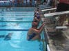 Orienta Beach Club member takes the 12-and-under 50-yard backstroke in Day 1 of counties.
