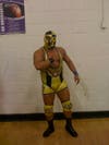 The match featured the New York debut of two "lucha libre" style international pro wrestlers from Mexico, called "minis" because of their height, and who are celebrities in Mexico. In white was Mascarita Dorada, 4'5" tall and weighing 110 pounds. In gold was Pierrothito, 5' ½" and weighing 165 pounds.